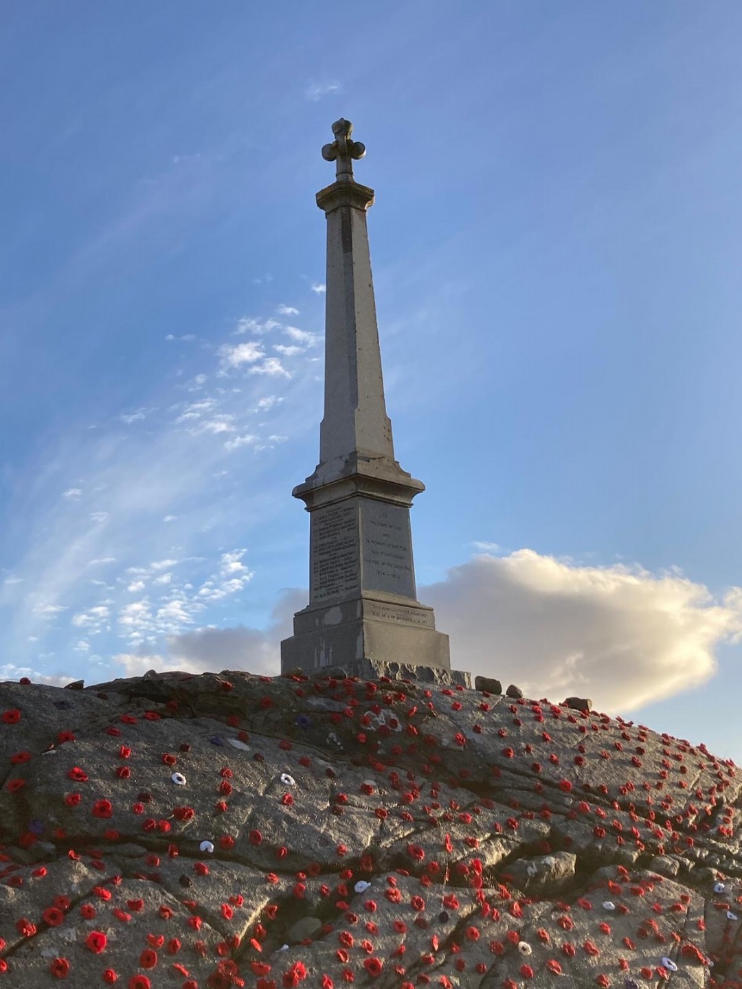 Congratulations and sincere thanks must also go to all the members of the Spin and Chatter group, who knitted the innumerable poppies that adorn the monument, as well as to Calum and Graham Martin, who tastefully light up the monument in a red glow when the sun sets. All these folks deserve all our thanks for their efforts in honouring and respecting those who made the ultimate sacrifice, so that we may enjoy the freedoms we have today.