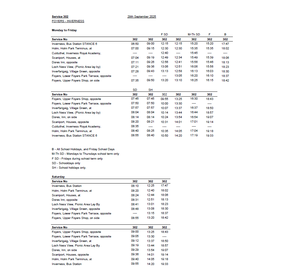 SERVICE 302 - INVERNESS - FOYERS