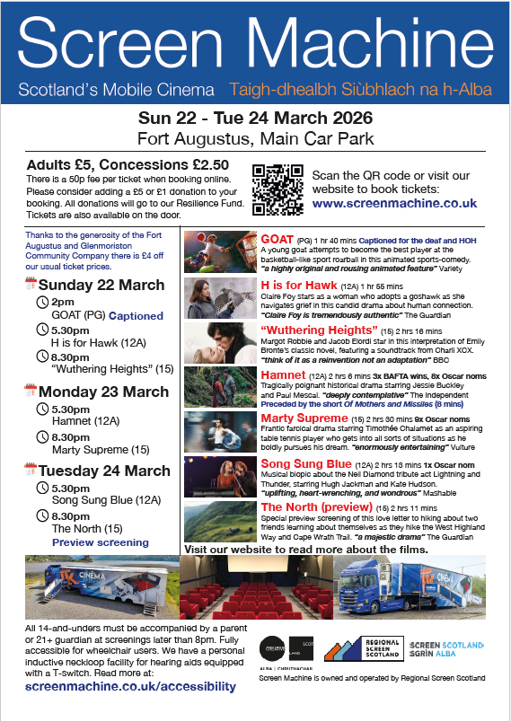 π¬The Screen Machine is rolling back into Fort Augustus next week!