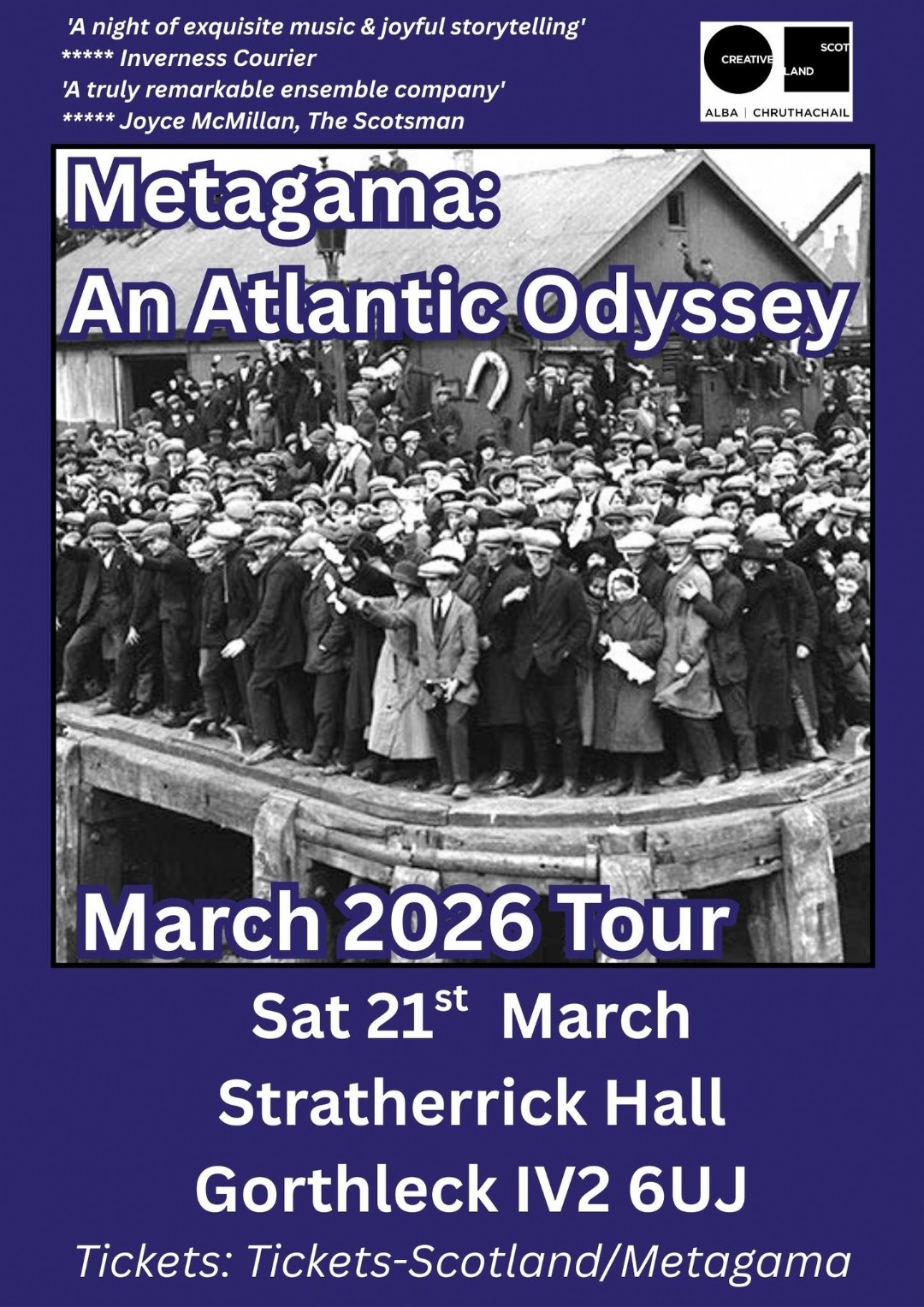 This Saturday (21st March) at Stratherrick Public Hall, experience a powerful live stage show telling the story of 1920s mass emigration from the Hebrides - from Scotland... -
