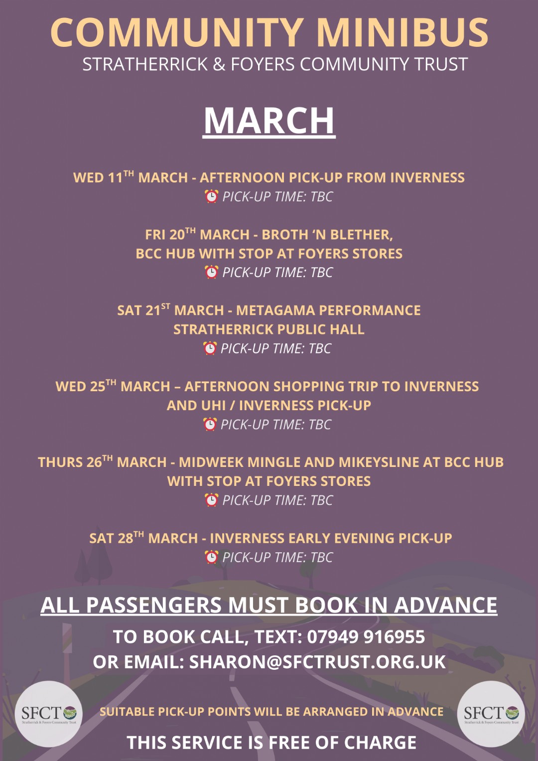Our minibus service is continuing through March, and we’re so excited to welcome you on board! There are a number of fantastic trips planned throughout... -