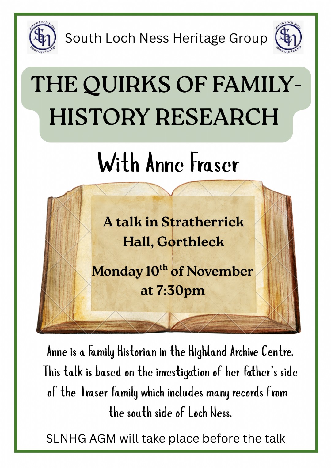 Join The South Loch Ness Heritage Group on the 10th Nov