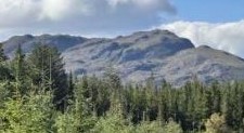 The road goes gently downhill. Just before the end, there is an older forestry road. Turn left here and walk towards the Loch, looking out for the Crannog. In places the track is a bit muddy but as you head uphill away from the loch the track improves again. Cross a large open area and continue on the track to your left. Loch Knockie comes into view again with Beinn a Bhacaidh prominent behind you. Continue on this track back to the start.